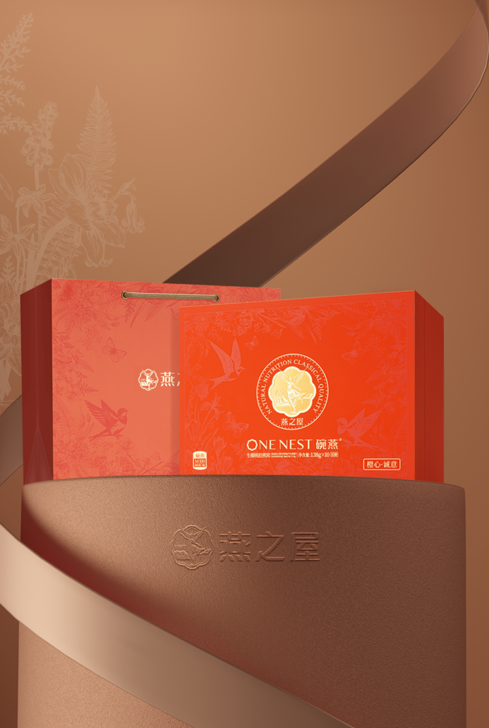 燕之屋26年專注高品質(zhì)燕窩,碗燕®M100·橙意款(橙心·誠意)生椰桃膠燕窩是風(fēng)味創(chuàng)新和天然食材融合的精研產(chǎn)品。產(chǎn)品以天然植物基原料(椰乳、茉莉花汁)為基底,甄選海南優(yōu)質(zhì)生椰乳,有機(jī)冰糖,精修高凈度天然桃膠,高品質(zhì)銀耳,每碗足料添加1g印尼特鉆產(chǎn)區(qū)*燕窩原料(*出自燕之屋燕窩研究院出具《印度尼西亞 燕窩產(chǎn)區(qū)等級評定報(bào)告V2.0》)。椰香與花香風(fēng)味的創(chuàng)意融合,銀耳的軟糯和桃膠、燕窩的Q彈,層層豐富的口感,清爽而不膩。為了呈現(xiàn)更加“碗”美的作品,此次賽事燕之屋獲獎作品《碗燕M100·橙意款(橙心·誠意)生椰桃膠燕窩》在禮盒包裝設(shè)計(jì)上同樣精雕細(xì)琢,將純粹瑰麗的大自然與傳統(tǒng)燕窩養(yǎng)生文化巧妙融合,譜寫出一支大自然的和諧樂章。畫面上草木蔓延、鮮花綻放,飛燕與蝴蝶躍然盒上,靈動自由。自然的輕盈之美與天然燕窩、桃膠等高品質(zhì)食材相得益彰,共同呈現(xiàn)大自然的美好饋贈,帶給人視覺與智慧上的雙重享受。
