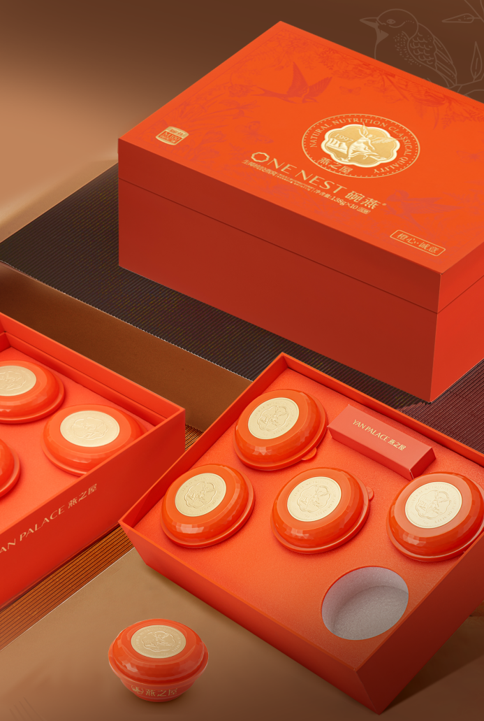 為增強(qiáng)禮盒的創(chuàng)新性與實(shí)用性,《碗燕M100·橙意款(橙心·誠意)生椰桃膠燕窩》禮盒內(nèi)部采用雙層式結(jié)構(gòu)設(shè)計(jì),使其具有更大的承裝空間。產(chǎn)品擺放合理有序、易于取出,便捷實(shí)用。同時,貼心設(shè)計(jì)勺盒結(jié)構(gòu),精巧美觀,獨(dú)具匠心。包裝色彩靈感源自時尚品牌愛馬仕的標(biāo)志性橙色,高貴神秘、鮮艷明麗,不僅釋放輕奢氣質(zhì)與年輕活力,更向消費(fèi)者傳達(dá)感恩與關(guān)愛,希望每個使用者都能在打開包裝時感受到燕之屋品牌真摯的情感關(guān)懷。